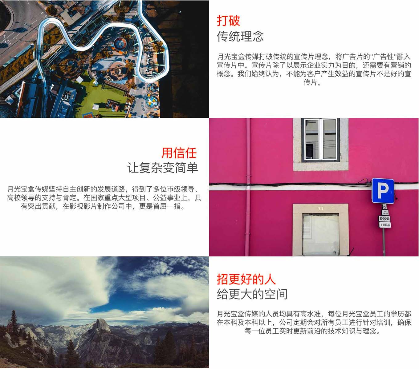 月光宝盒影视汇聚了经验丰富的创作精英,兼具专业理论和实战经验,多年来积累的丰富服务经验,以最短的时间了解客户的诉求